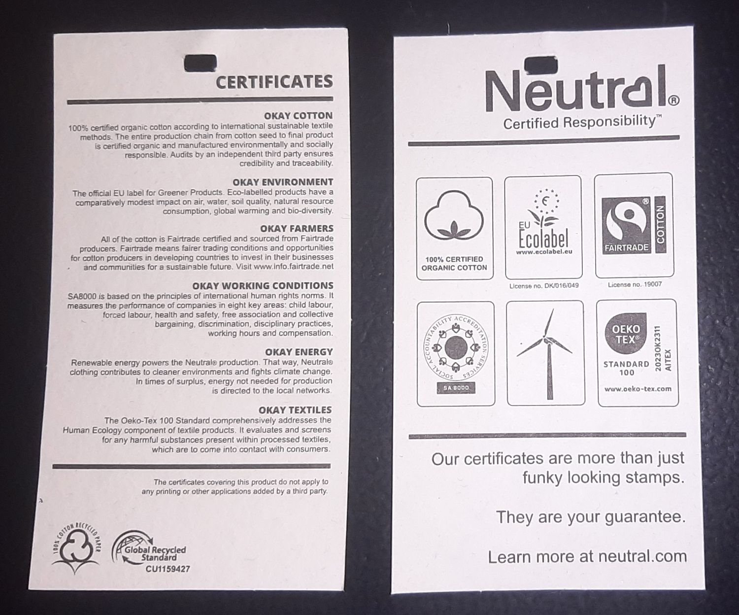 Oeko-Tex Standard 100 Screened for any harmful substance. Clean and ready to wear.